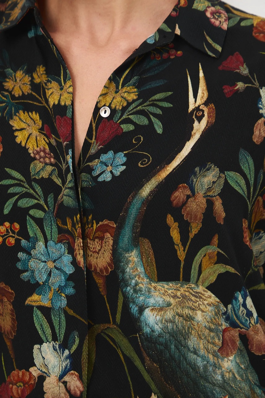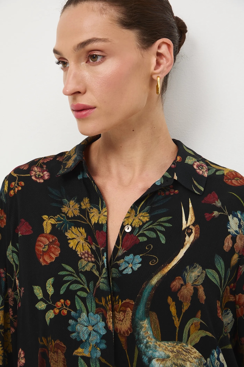 Limitowana kolekcja powstała we współpracy z Zamkiem Królewskim na Wawelu - jednym z najważniejszych muzeów w Polsce, w miejscu, którego historia sięga czasów Bolesława Chrobrego. Inspiracją były skarby polskiego i europejskiego dziedzictwa kulturowego - projekty z kolekcji przenoszą w świat królewskich arrasów i insygniów władzy, symboli majestatu monarchii. Znalazły się w niej m.in. T-shirty, bluzy, sukienki, koszule, akcesoria i biżuteria. Printy i detale czerpią bezpośrednio z dzieł sztuki, a szczególne miejsce zajmują tu renesansowe arrasy Zygmunta Augusta - jedna z najcenniejszych kolekcji tego typu w Europie i jedyny na świecie - tak liczny - zbiór XVI-wiecznych tkanin stworzonych na zamówienie jednego króla. Kunsztowne wzory zwierząt, roślin i pejzaży, utkane złotą i srebrną nicią, zostały przełożone na współczesne fasony. Kolekcja czerpie również z symboliki władzy: koron, insygniów oraz średniowiecznych zbroi, które przez stulecia stanowiły atrybut potęgi monarchów. W nowoczesnych sylwetkach zostały przełożone na detale, printy i wykończenia, nadając ubraniom nowe znaczenia. Współpraca z Zamkiem Królewskim na Wawelu to nie tylko kolekcja ubrań, ale i doświadczenie - podróż przez wieki, zaklęta w tkaninach i detalach. Każdy element kolekcji niesie w sobie fragment królewskiego dziedzictwa, przeniesionego do współczesności - to moda, która przekracza sezonowość, łącząc historię i tradycję z nowoczesną wrażliwością estetyczną.Wzór inspirowany arrasami znajdującymi się w zbiorach Zamku Królewskiego na Wawelu.