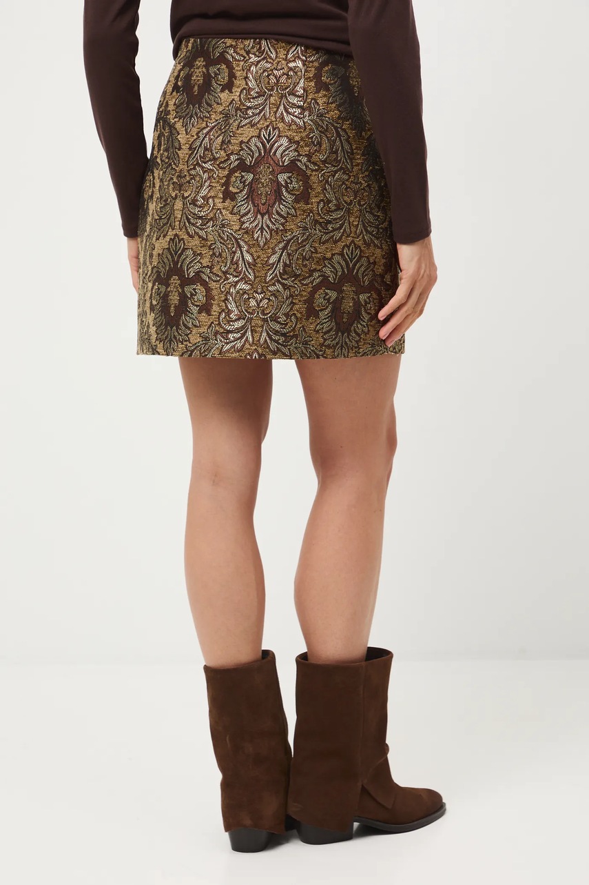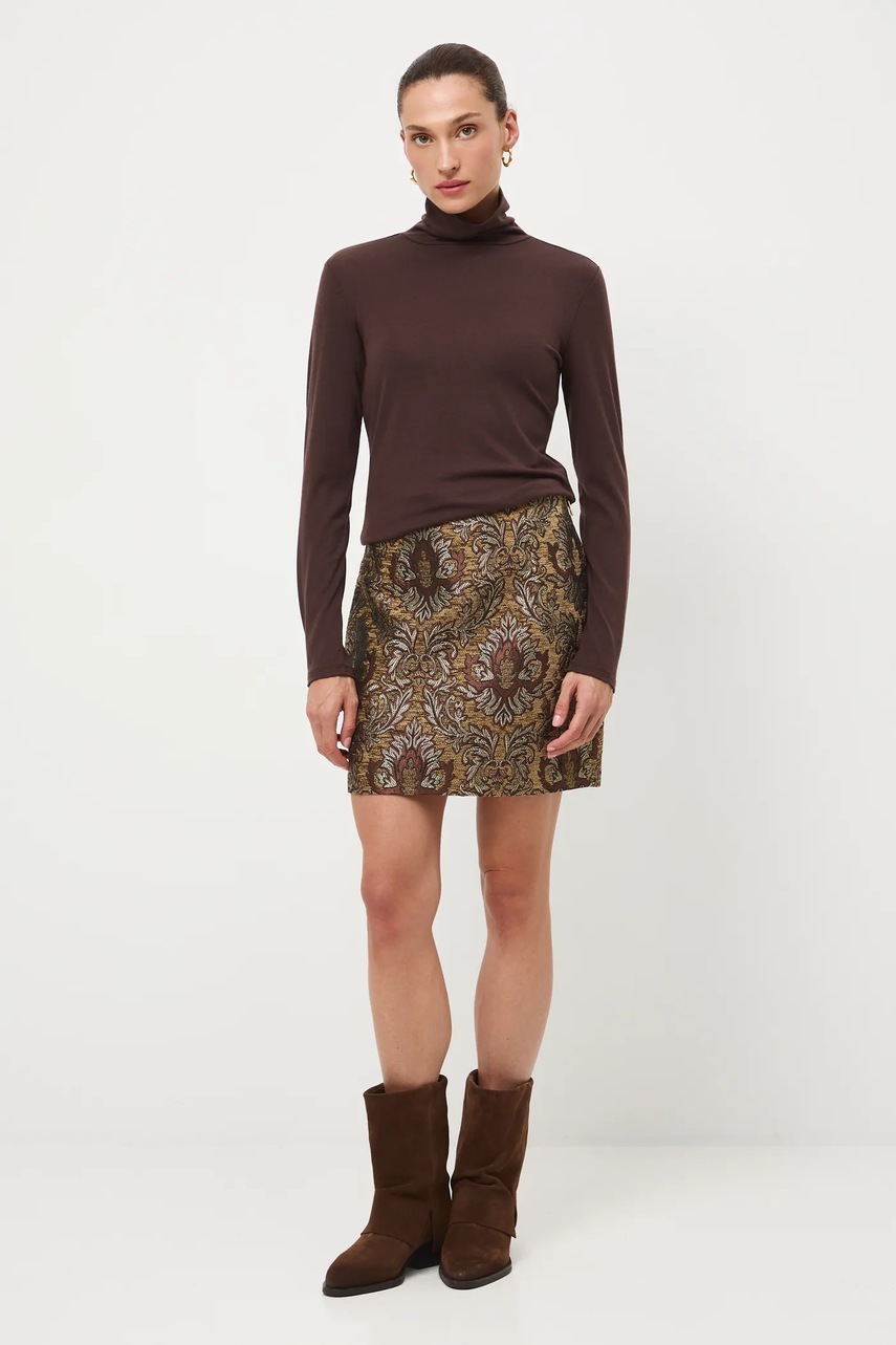 Limitowana kolekcja powstała we współpracy z Zamkiem Królewskim na Wawelu - jednym z najważniejszych muzeów w Polsce, w miejscu, którego historia sięga czasów Bolesława Chrobrego. Inspiracją były skarby polskiego i europejskiego dziedzictwa kulturowego - projekty z kolekcji przenoszą w świat królewskich arrasów i insygniów władzy, symboli majestatu monarchii. Znalazły się w niej m.in. T-shirty, bluzy, sukienki, koszule, akcesoria i biżuteria. Printy i detale czerpią bezpośrednio z dzieł sztuki, a szczególne miejsce zajmują tu renesansowe arrasy Zygmunta Augusta - jedna z najcenniejszych kolekcji tego typu w Europie i jedyny na świecie - tak liczny - zbiór XVI-wiecznych tkanin stworzonych na zamówienie jednego króla. Kunsztowne wzory zwierząt, roślin i pejzaży, utkane złotą i srebrną nicią, zostały przełożone na współczesne fasony. Kolekcja czerpie również z symboliki władzy: koron, insygniów oraz średniowiecznych zbroi, które przez stulecia stanowiły atrybut potęgi monarchów. W nowoczesnych sylwetkach zostały przełożone na detale, printy i wykończenia, nadając ubraniom nowe znaczenia. Współpraca z Zamkiem Królewskim na Wawelu to nie tylko kolekcja ubrań, ale i doświadczenie - podróż przez wieki, zaklęta w tkaninach i detalach. Każdy element kolekcji niesie w sobie fragment królewskiego dziedzictwa, przeniesionego do współczesności - to moda, która przekracza sezonowość, łącząc historię i tradycję z nowoczesną wrażliwością estetyczną.Wzór inspirowany kurdybanami znajdującymi się w Zamku Królewskim na Wawelu.