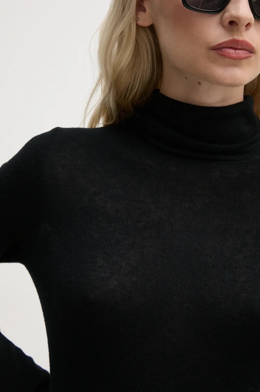 Mos Mosh sweter wełniany damski kolor czarny lekki z golfem 165910