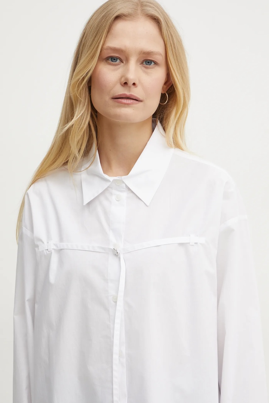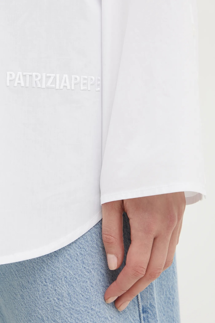 Patrizia Pepe koszula bawełniana damska kolor biały relaxed z kołnierzykiem klasycznym 8C0742 AH74