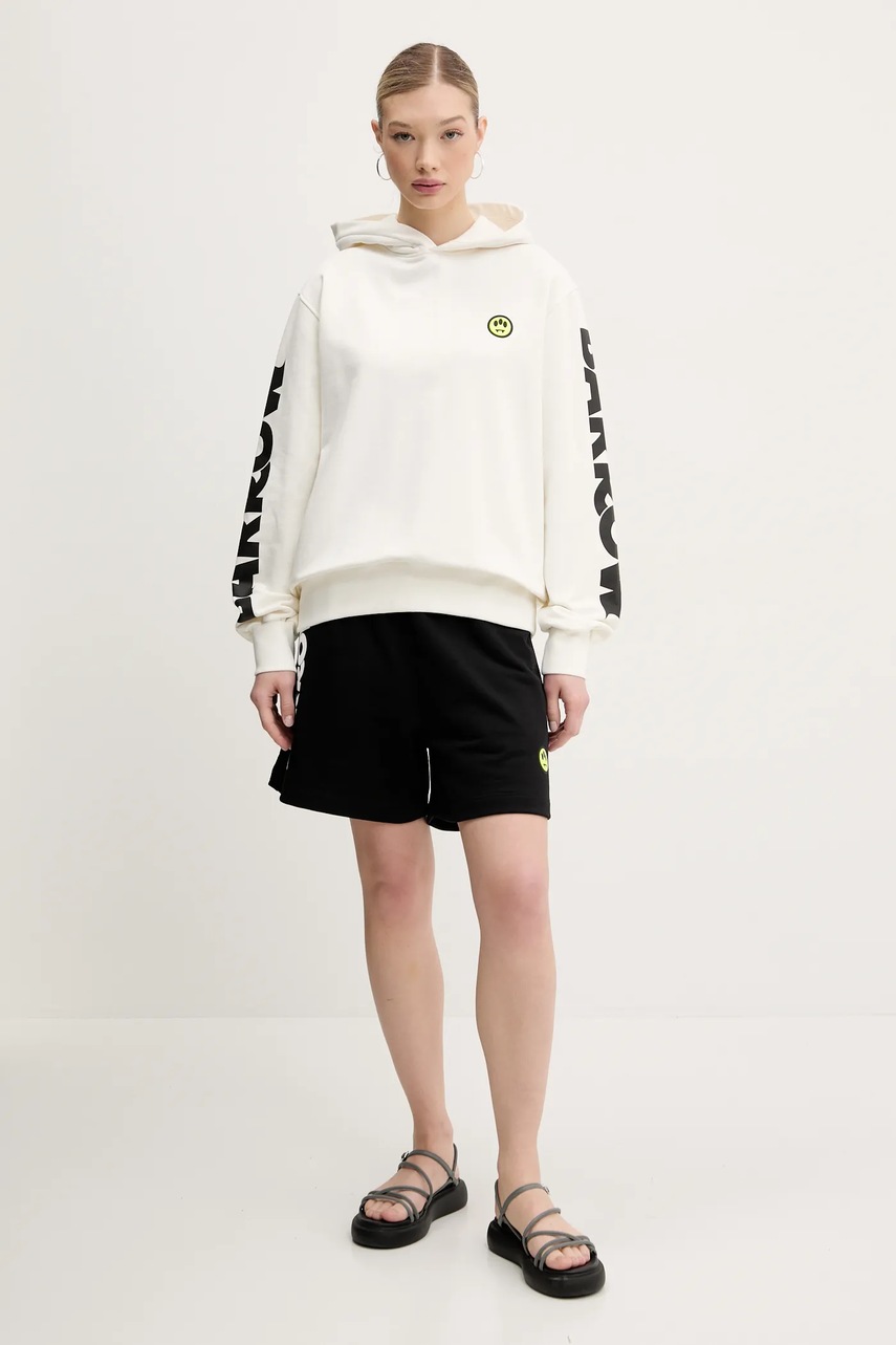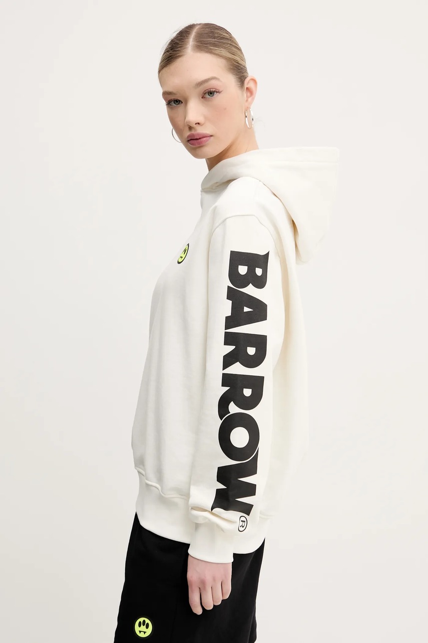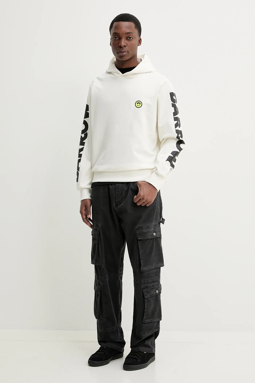 Barrow bluza bawełniana kolor biały z kapturem z nadrukiem S5BWUAHS086