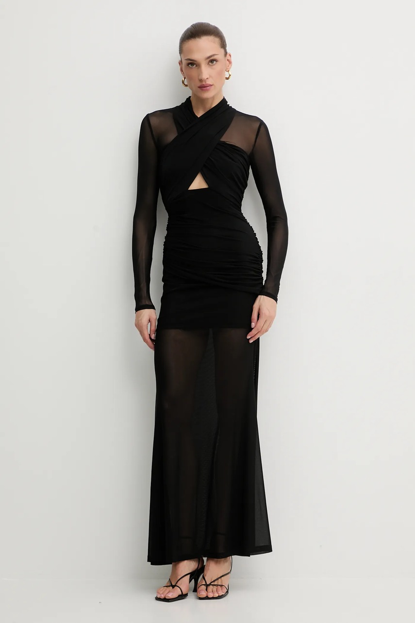 Bardot sukienka kolor czarny maxi dopasowana 59987DB