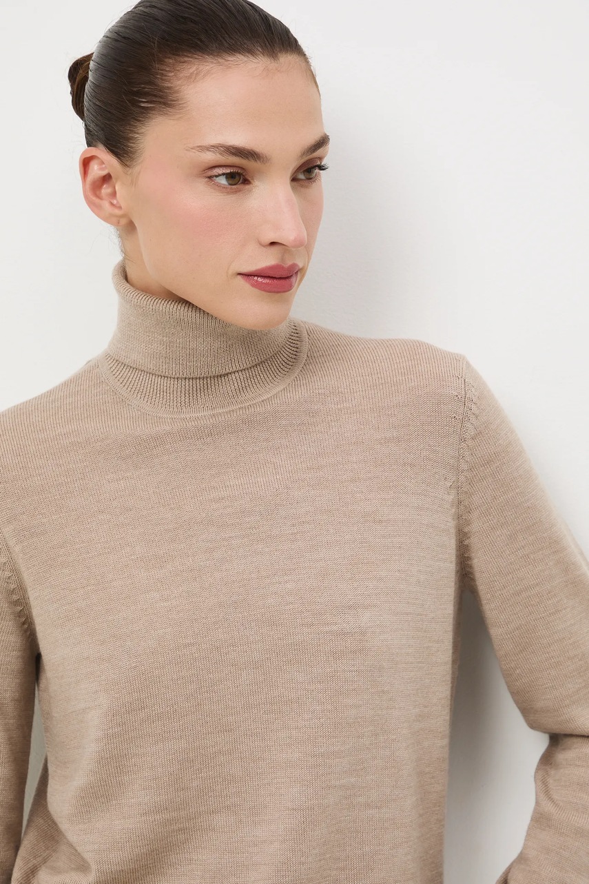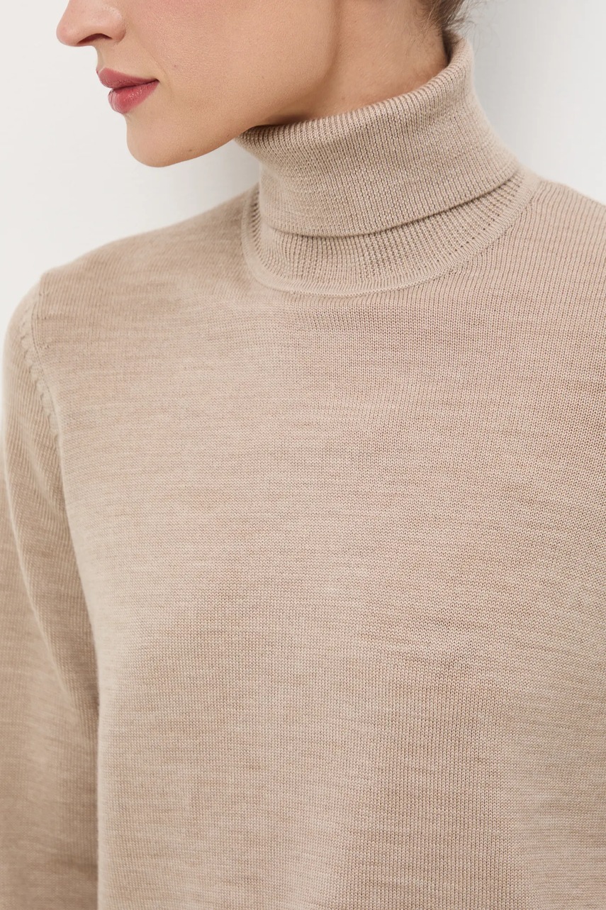 Medicine sweter z wełny merino kolor beżowy z golfem