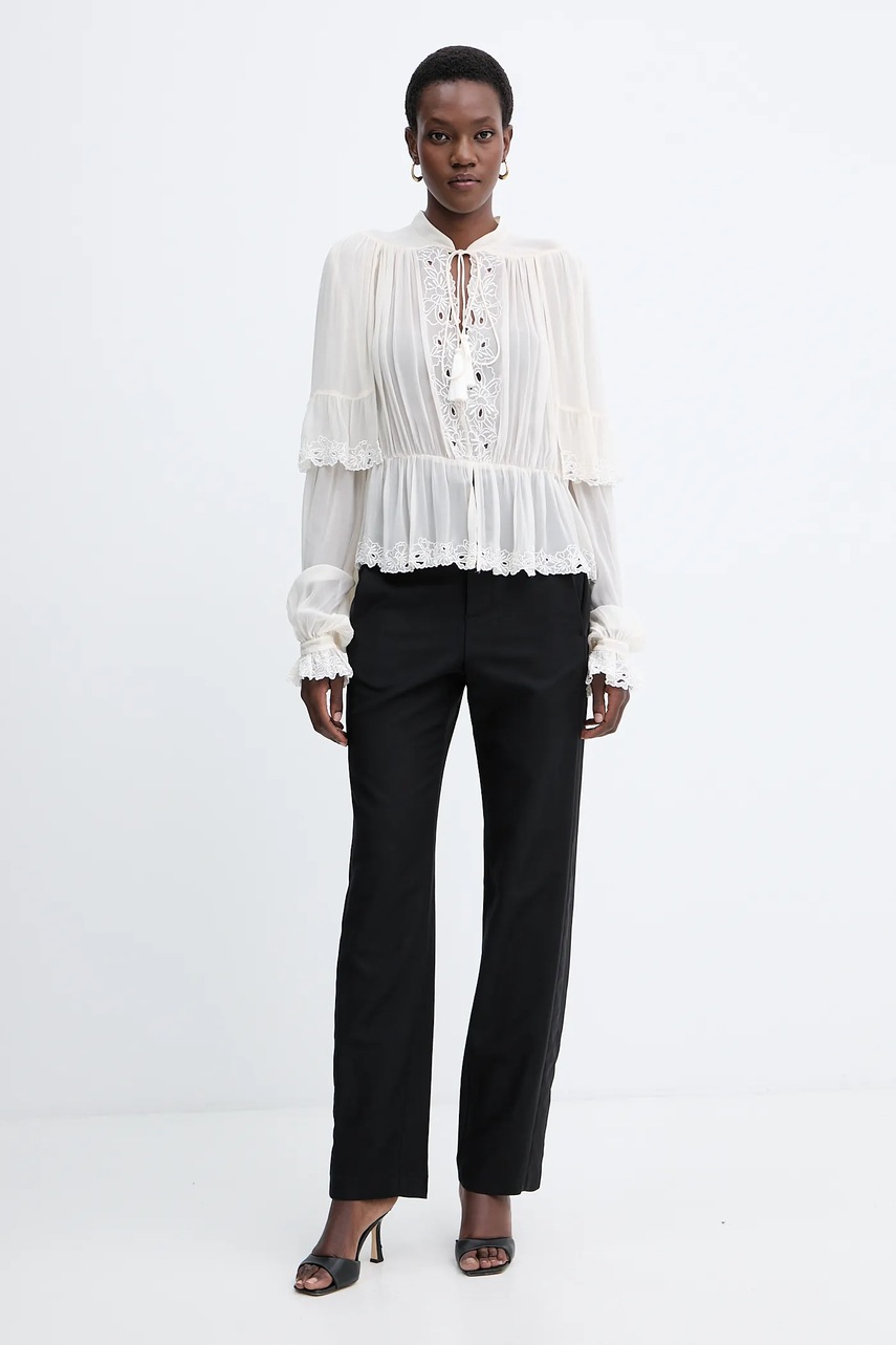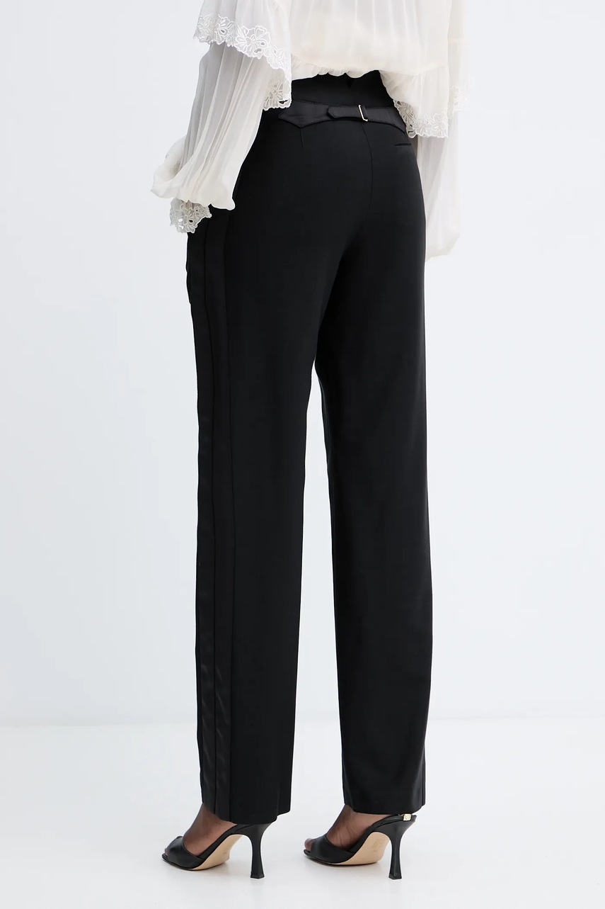 Twinset spodnie z domieszką wełny damskie kolor czarny proste high waist 252TS2063
