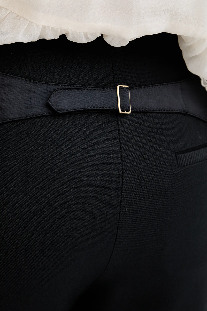 - Model z podwyższoną talią i zapięciem na suwak i guziki.