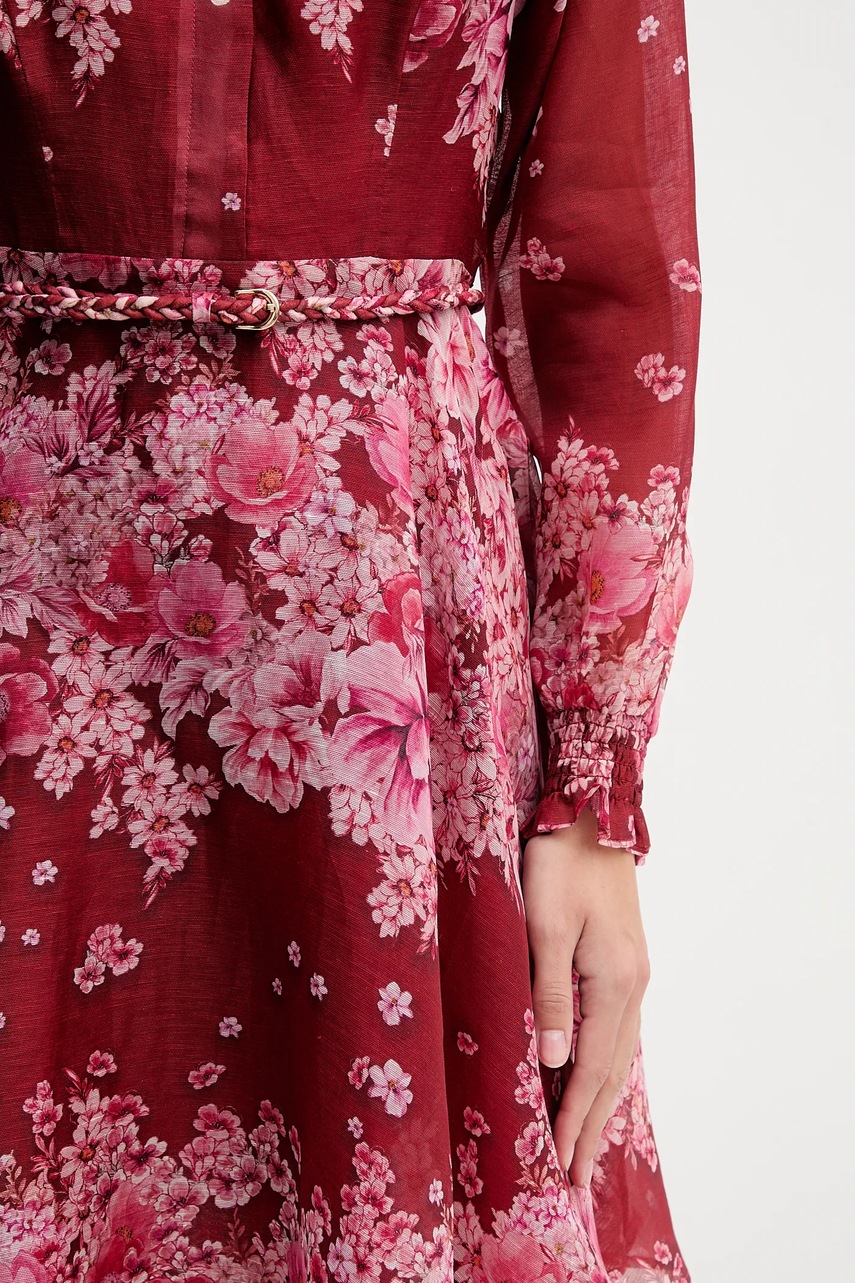 Hale BOB sukienka z dodatkiem jedwabiu kolor bordowy mini rozkloszowana 58YZ670A