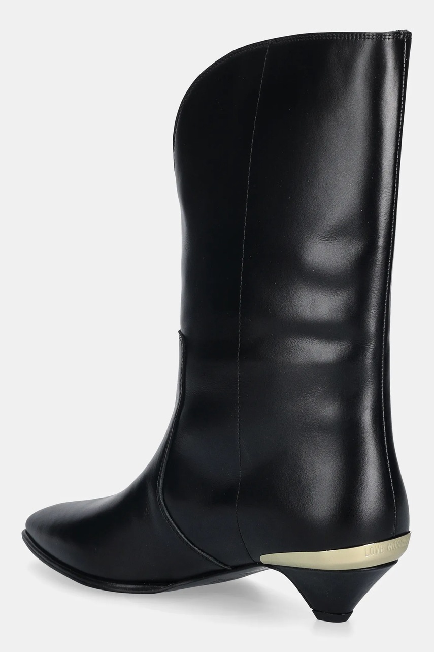 Love Moschino botki skórzane kolor czarny na małym obcasie JA24363G0NIA0000