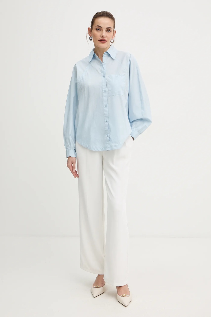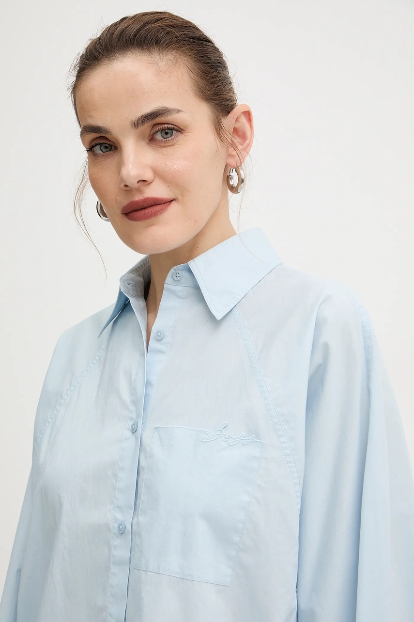 BOSS Orange koszula bawełniana damska kolor niebieski relaxed z kołnierzykiem klasycznym 50552163