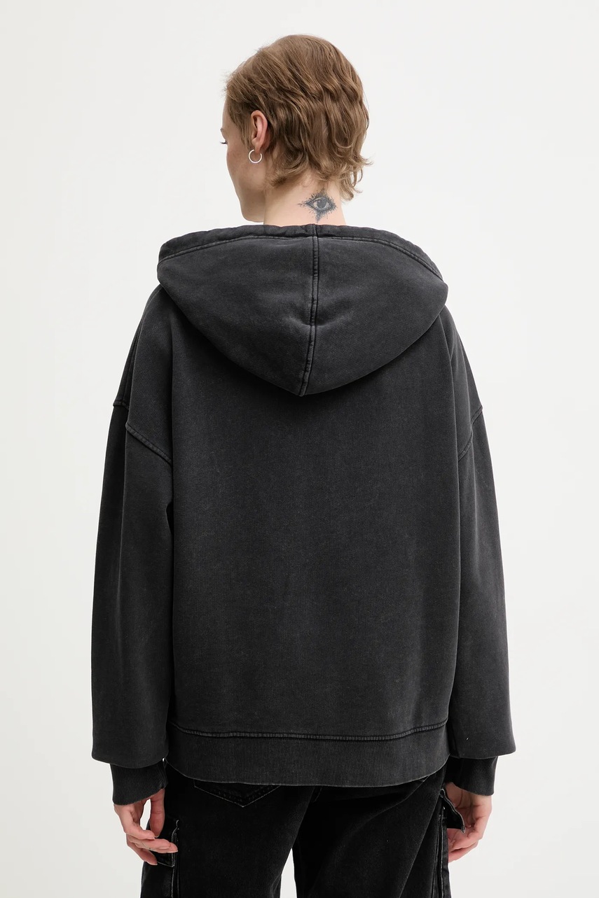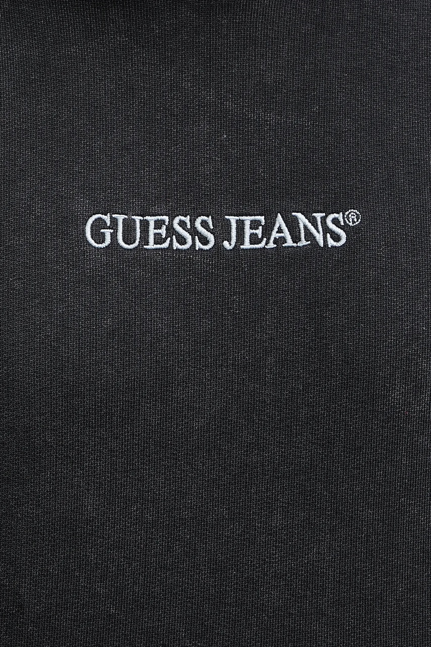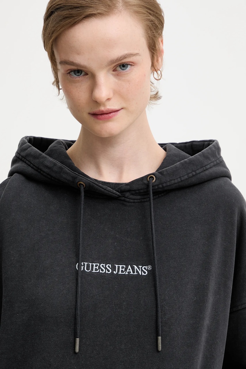 Guess Jeans bluza bawełniana damska kolor czarny z kapturem z aplikacją W5BQ15 KCPR1