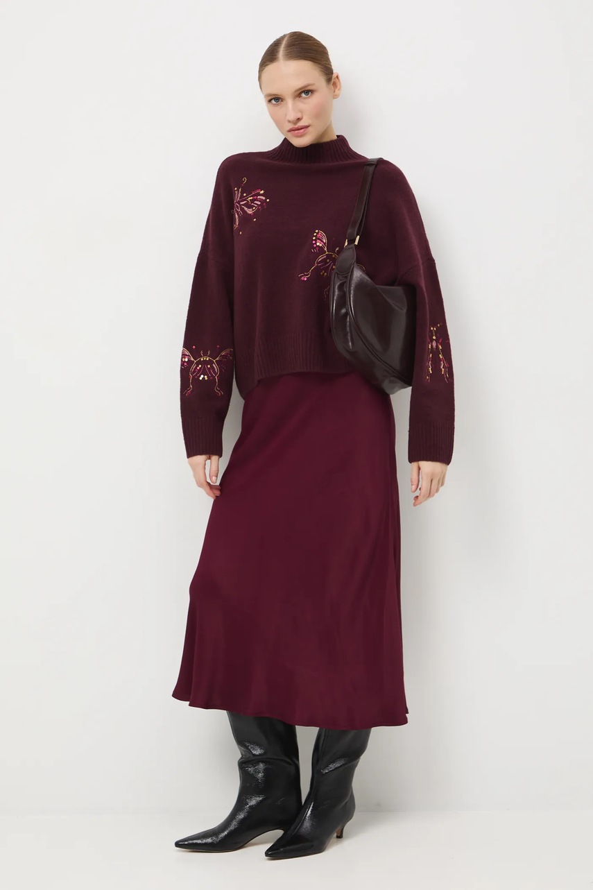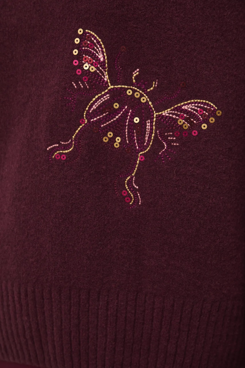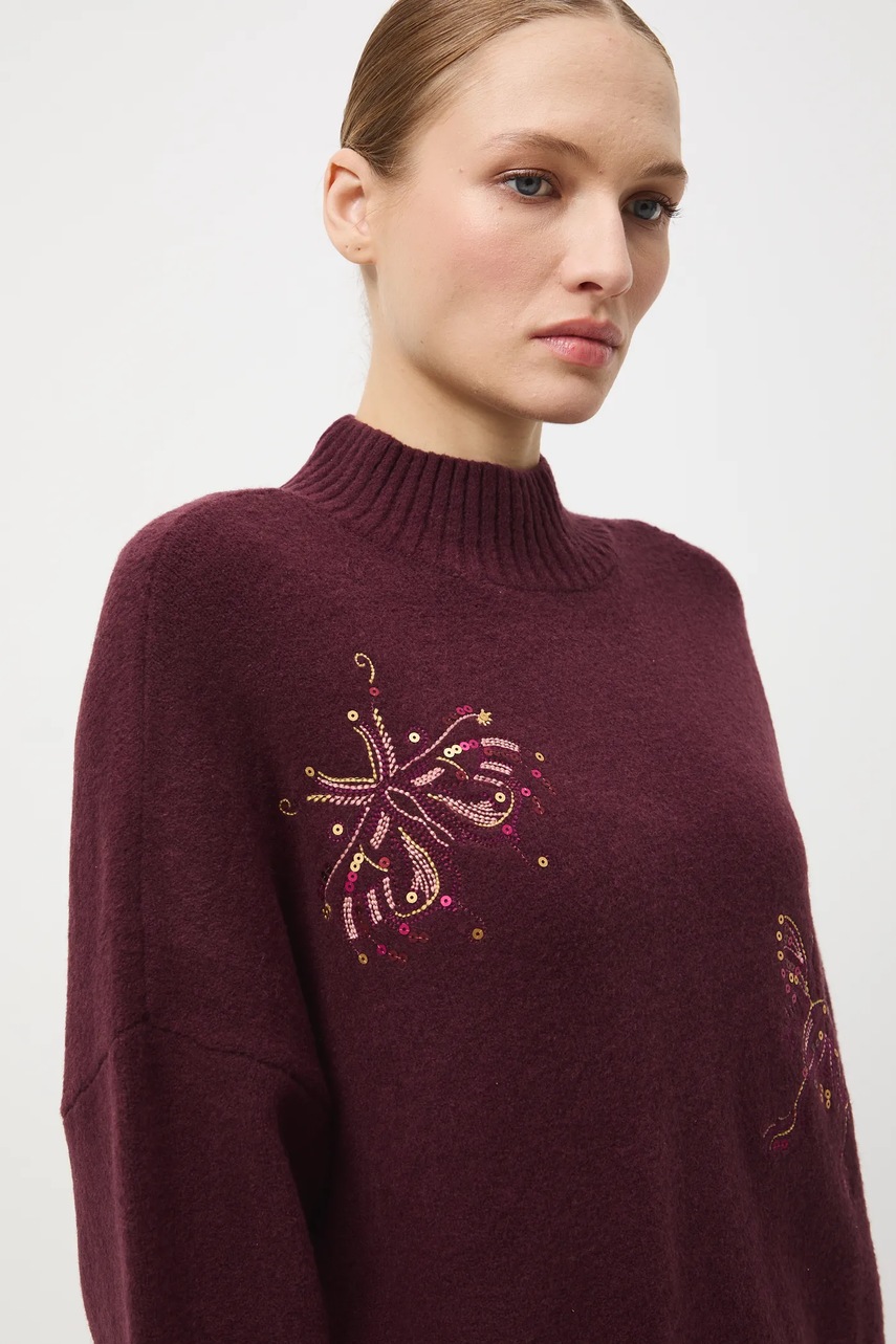 Medicine sweter z domieszką wełny damski kolor bordowy z półgolfem