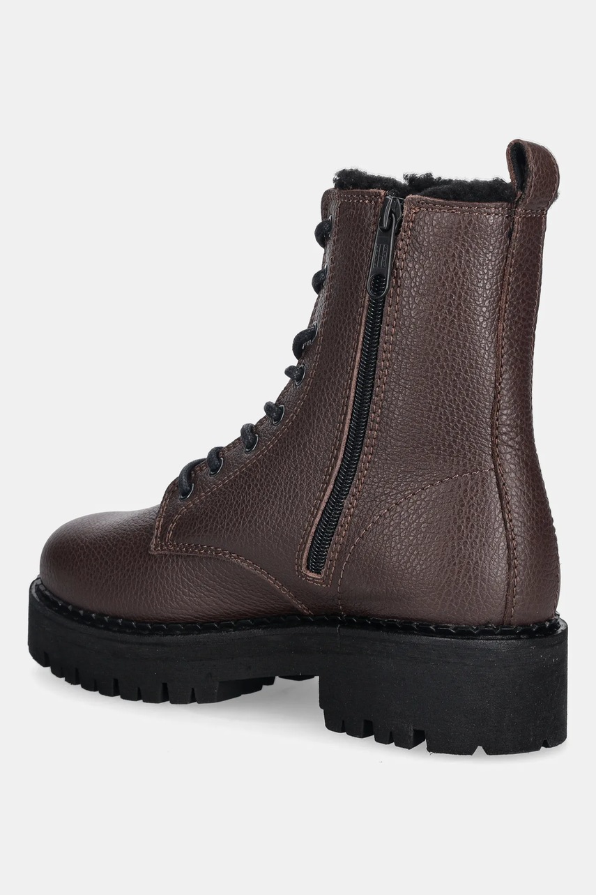 Tommy Jeans botki skórzane TJW URBAN LACEUP BOOT WL damskie kolor brązowy na platformie ocieplone EN0EN02906