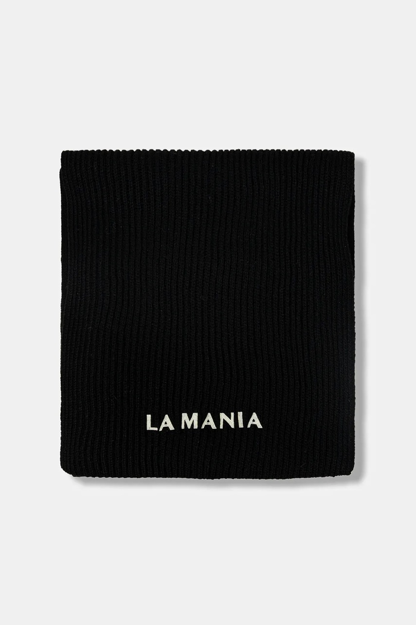 La Mania szalik wełniany MERINOWOOL damski kolor czarny gładki MERINOWOOL