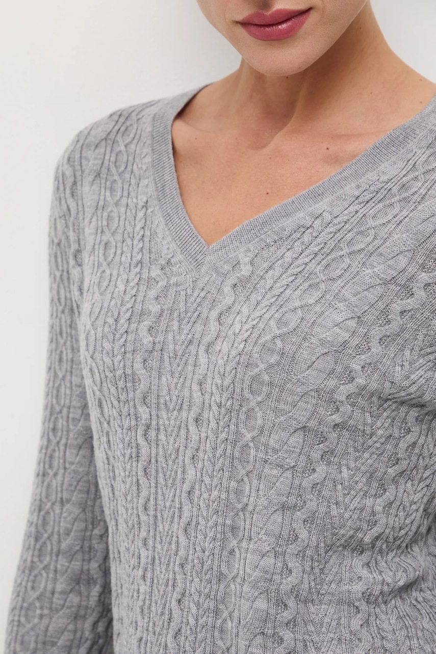 - Sweter w fasonie regular zapewnia wygodę i uniwersalny wygląd. Delikatnie dopasowuje się do sylwetki, ale nie podkreśla jej nadmiernie. Klasyczny i prosty, sprawdzi się zarówno w eleganckich, jak i casualowych stylizacjach.
