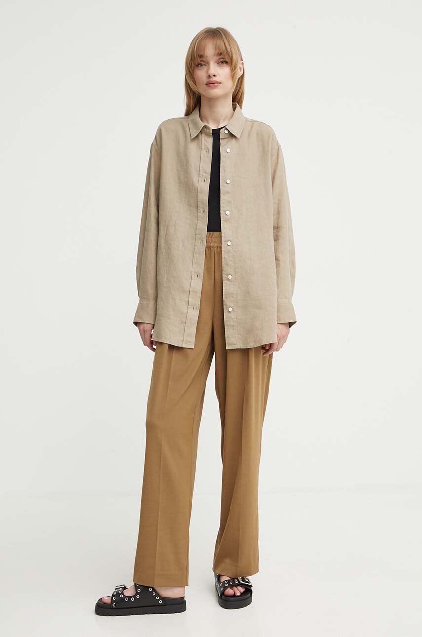 Samsoe Samsoe spodnie JULIA damskie kolor beżowy szerokie high waist F23100048