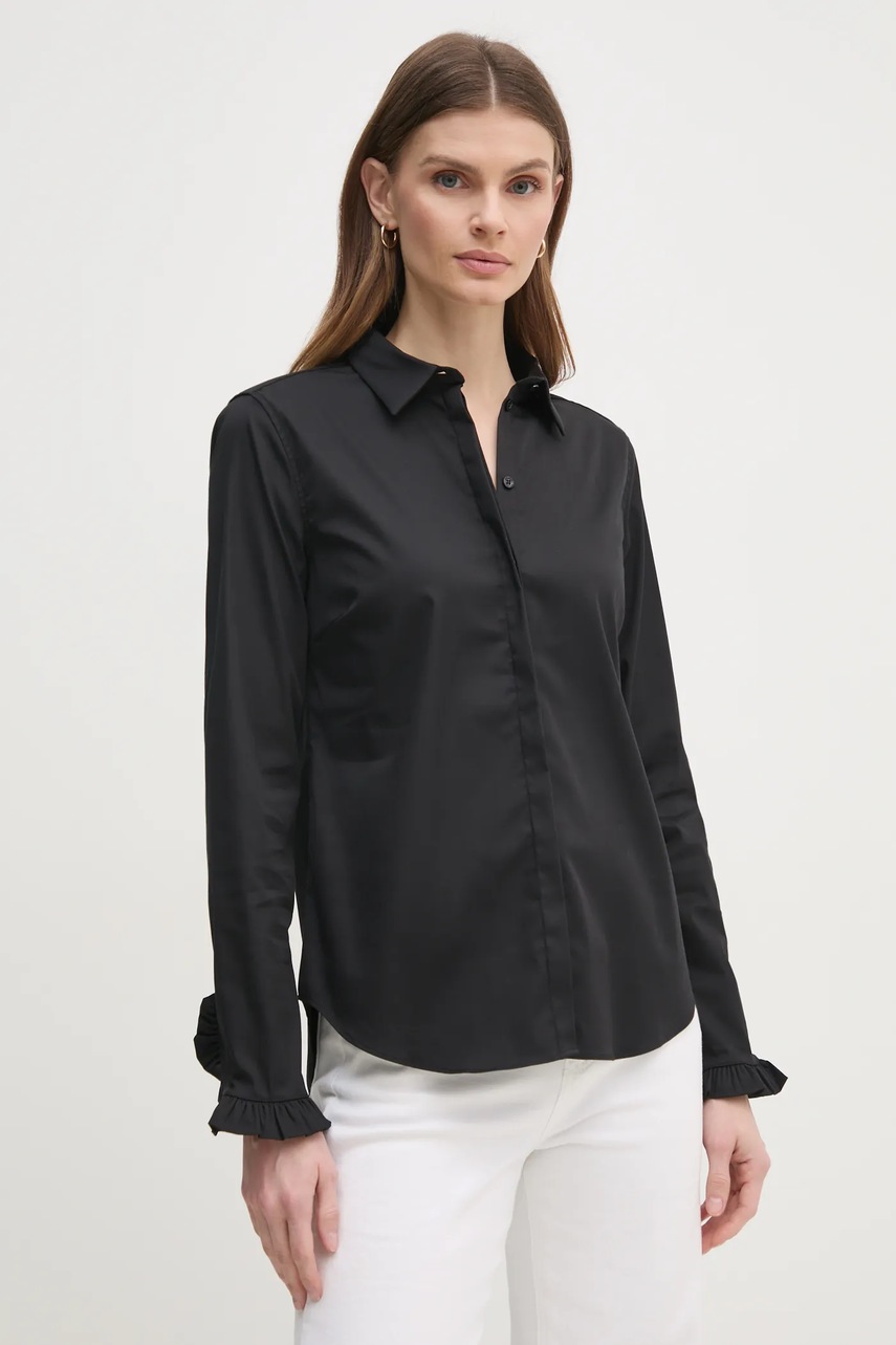 Mos Mosh koszula damska kolor czarny regular z kołnierzykiem klasycznym 144070
