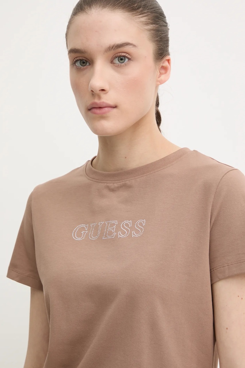 Guess t-shirt BRIANA damski kolor brązowy V3BI11 J1314