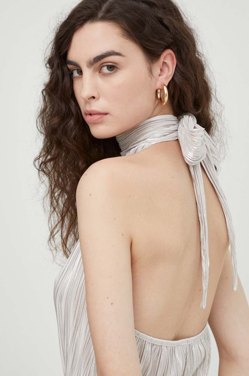 Bruuns Bazaar bluzka damska kolor srebrny gładka