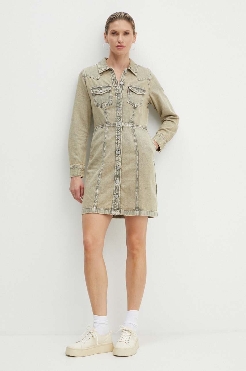 Levi's sukienka jeansowa kolor beżowy mini prosta