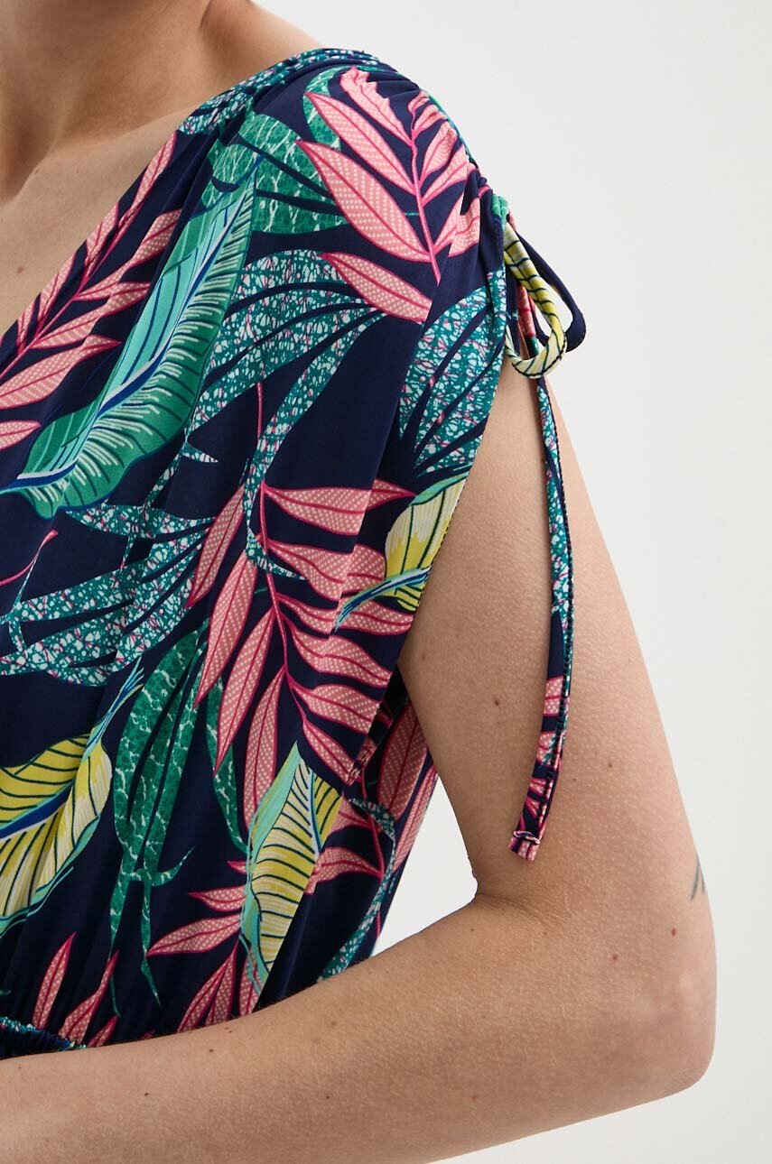 - Krój rękawa z obniżoną linią ramion nie ogranicza mobilności.
