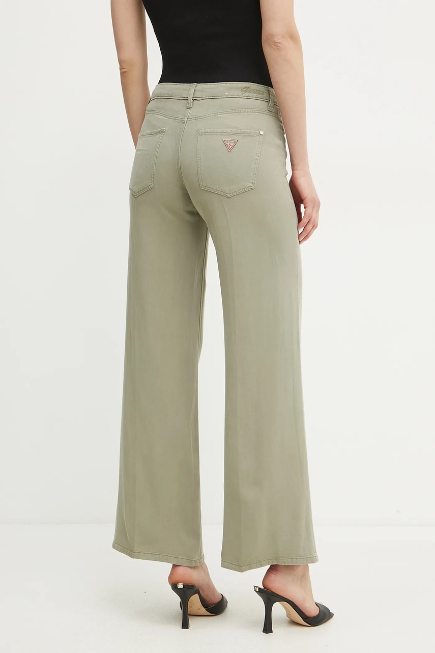 Guess spodnie damskie kolor zielony proste high waist W4GA96 WDP85