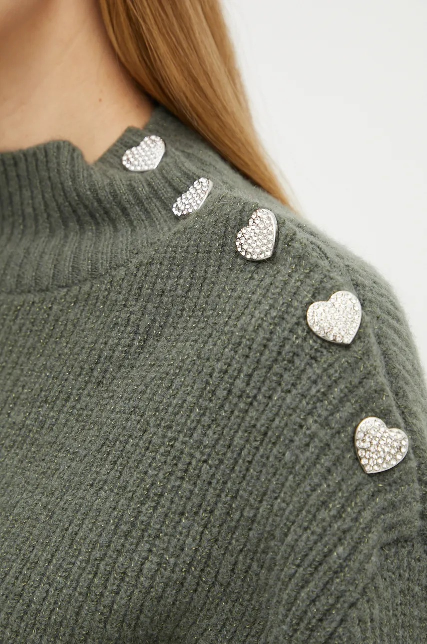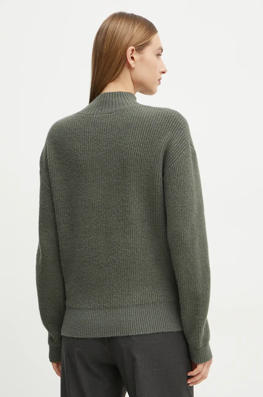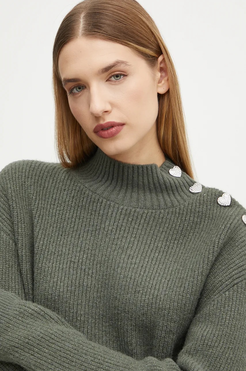 Morgan sweter z domieszką wełny MSTORI damski kolor zielony z półgolfem MSTORI