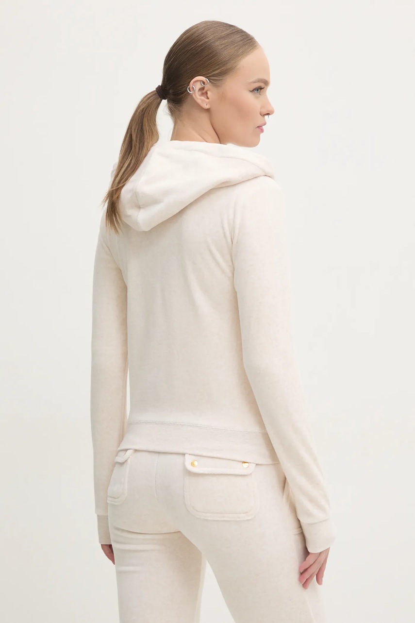 Juicy Couture bluza welurowa ROBERTSON GOLD kolor beżowy z kapturem melanżowa JCAP176G