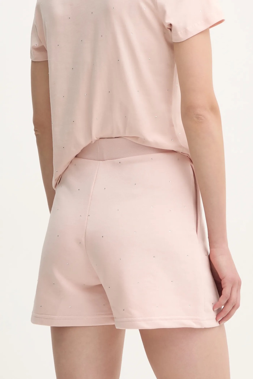 Guess szorty RHINESTONES damskie kolor różowy z aplikacją high waist V5RD03 KCLJ0