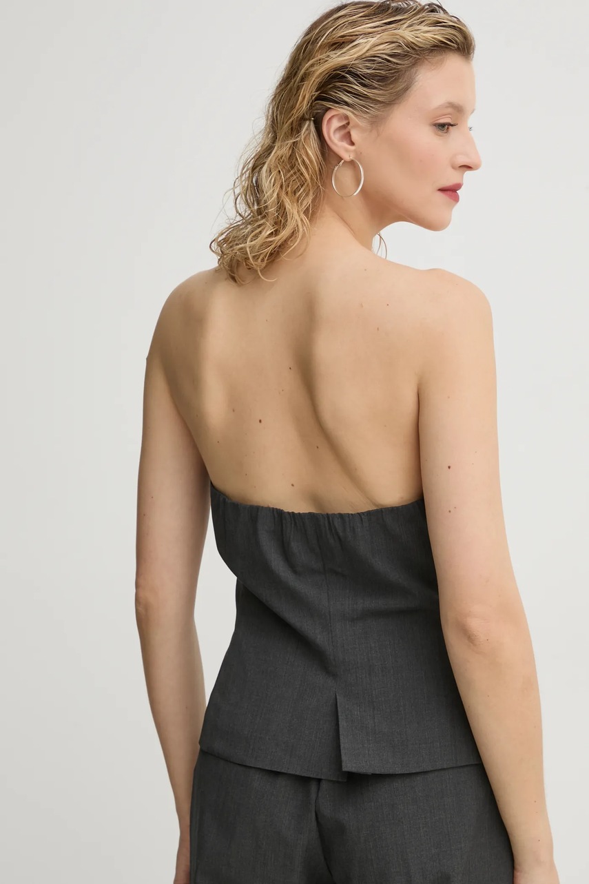 Samsoe Samsoe top z domieszką wełny SAELLEN kolor szary gładka F24400131