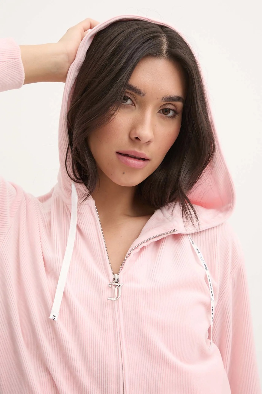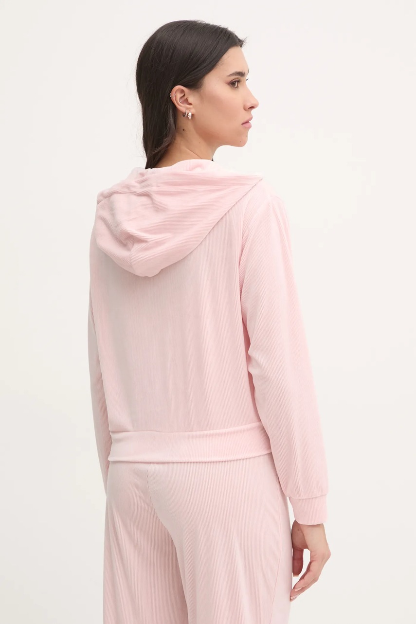 Juicy Couture bluza piżamowa LIV RIB VELOUR HOODIE damska kolor różowy JCLBJ125503