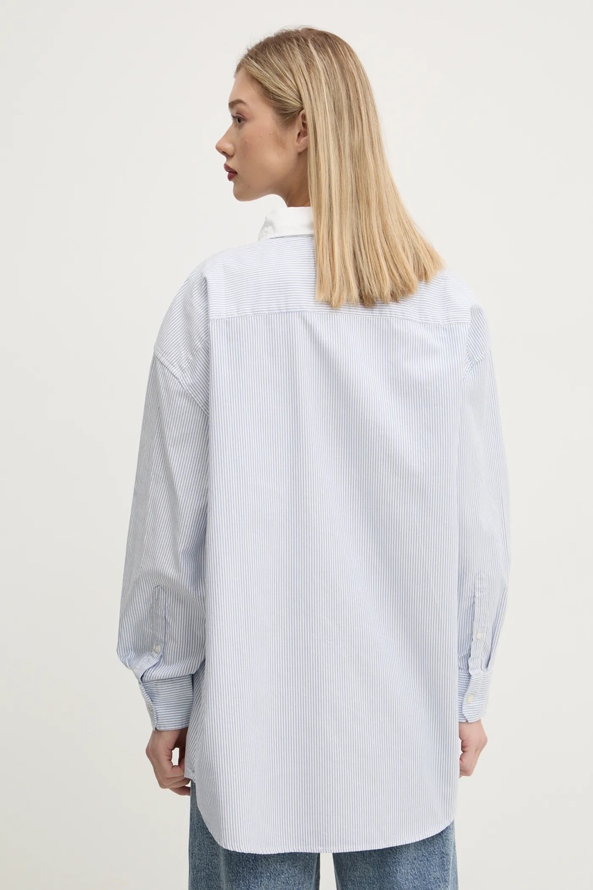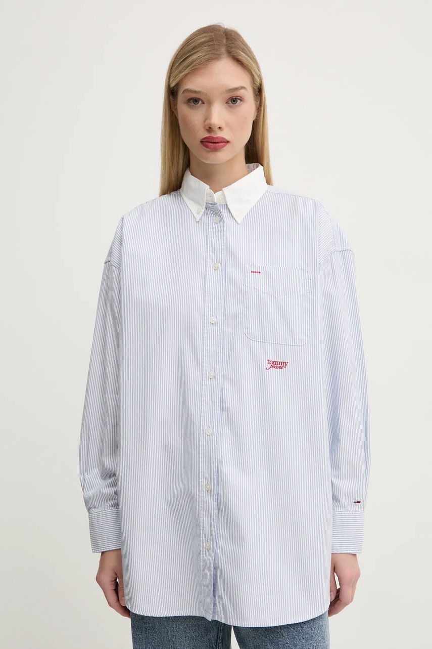 Tommy Jeans koszula bawełniana damska kolor niebieski relaxed z kołnierzykiem klasycznym DW0DW20209