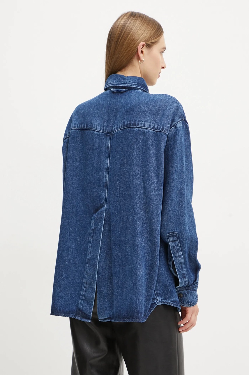 Won Hundred koszula damska kolor granatowy relaxed z kołnierzykiem klasycznym 3617-15162