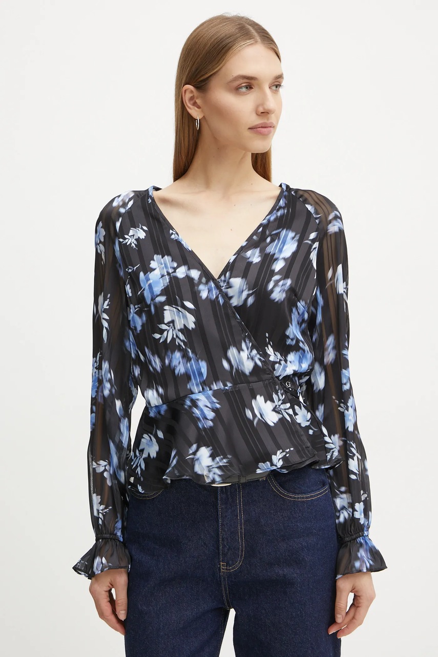 Guess bluzka damska kolor czarny wzorzysta W5RH19 WGWV2