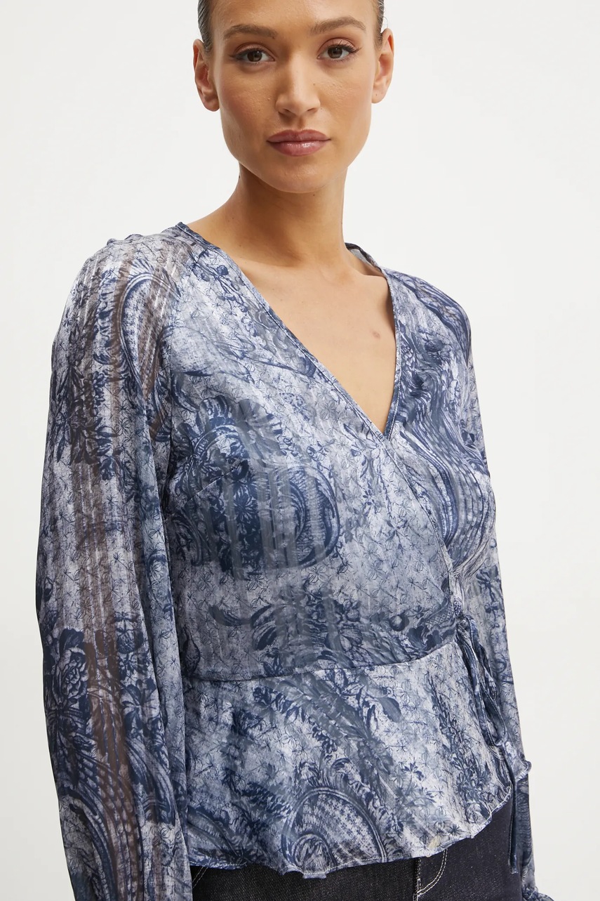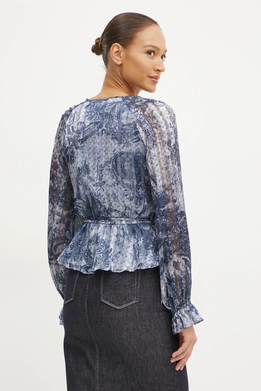 Guess bluzka damska kolor niebieski wzorzysta W5RH19 WGWV2