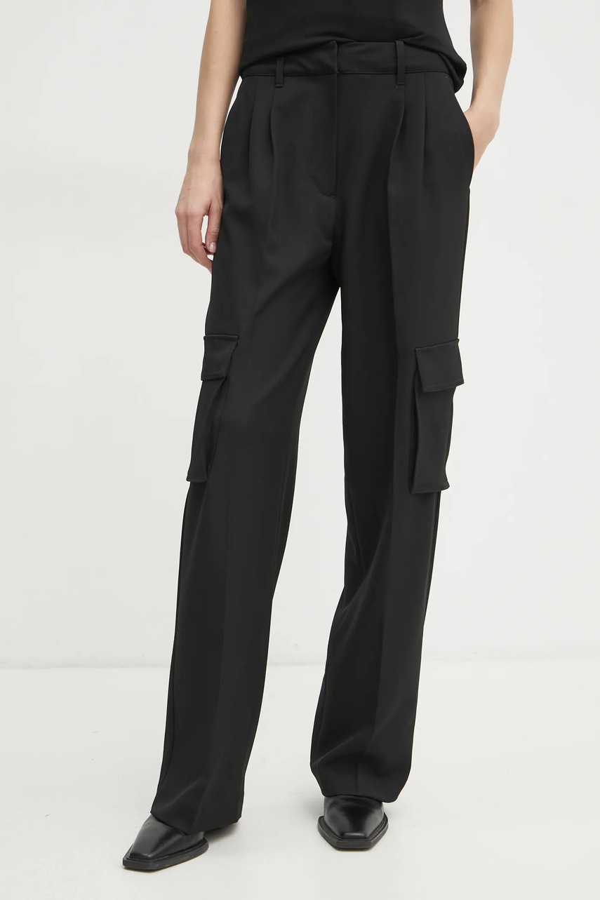 Guess spodnie MATEA damskie kolor czarny szerokie high waist W5RB41 WGX02