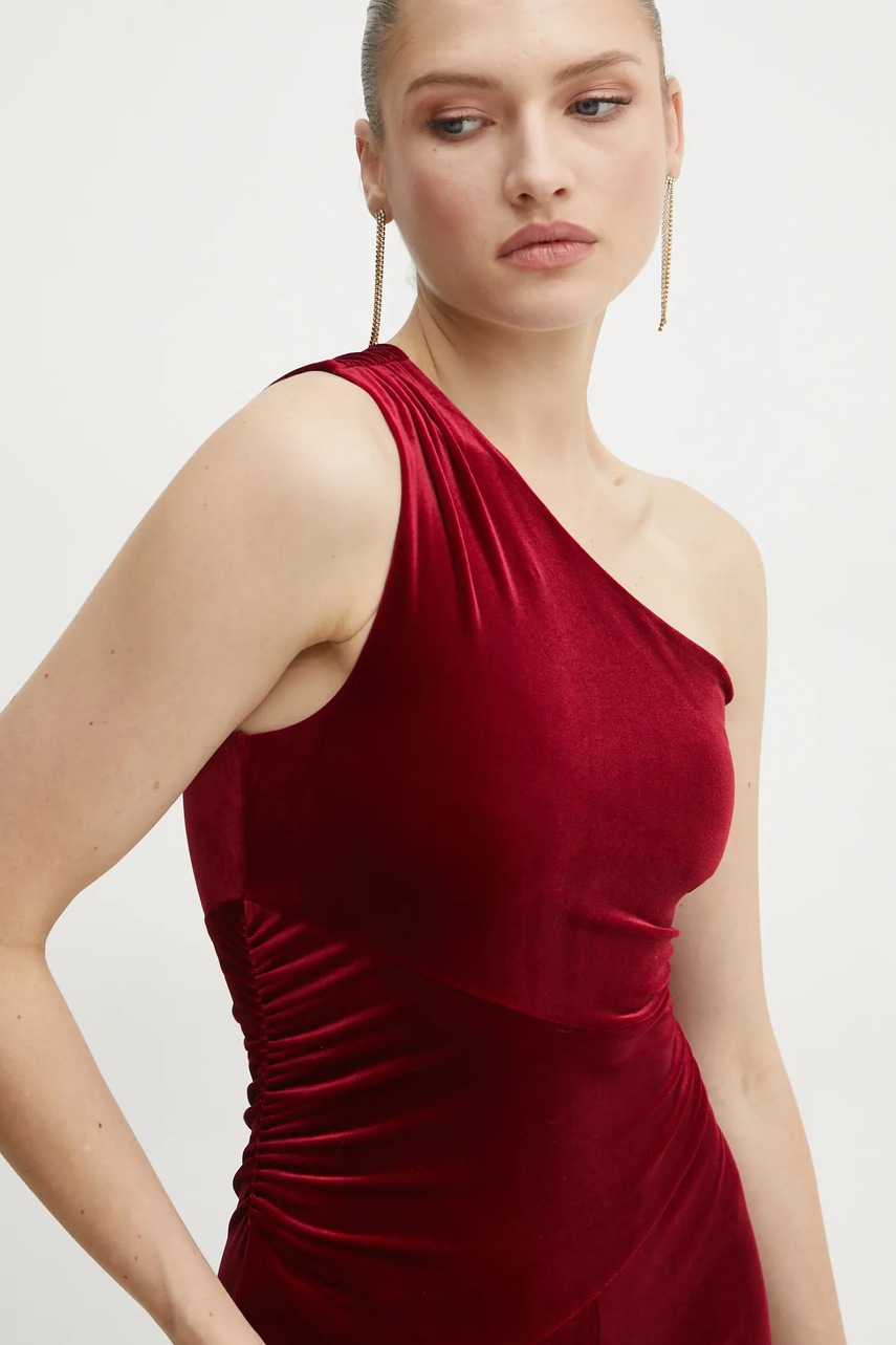Guess kombinezon welurowy BAILEY kolor bordowy z dekoltem okrągłym W5RD71 KCM62