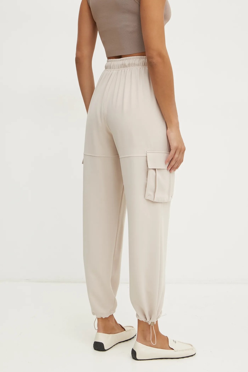 Liu Jo spodnie damskie kolor beżowy proste high waist TA5102 TS923