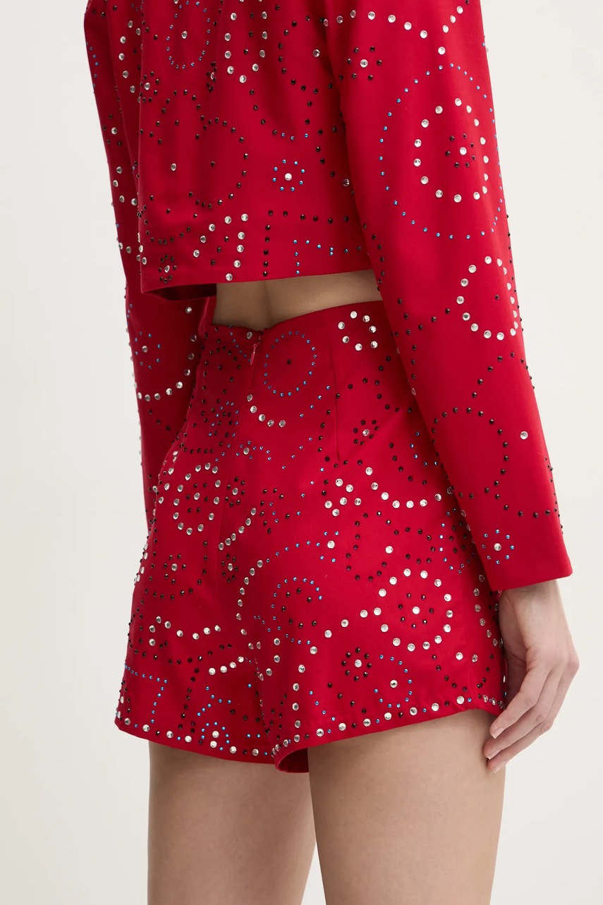 Never Fully Dressed szorty Gem damskie kolor czerwony z aplikacją high waist NFDTR423