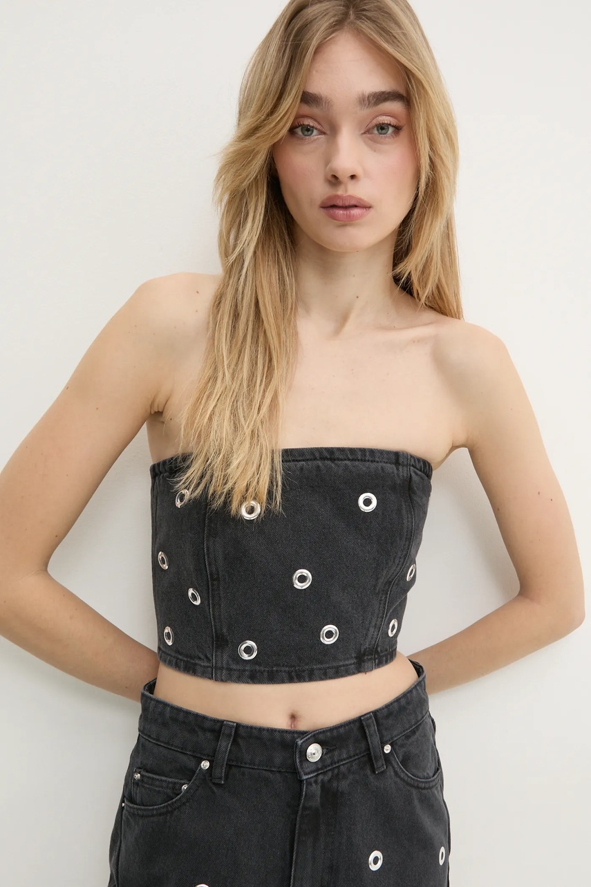 Rotate bluzka jeansowa 0 damska kolor szary z aplikacją 1140052998