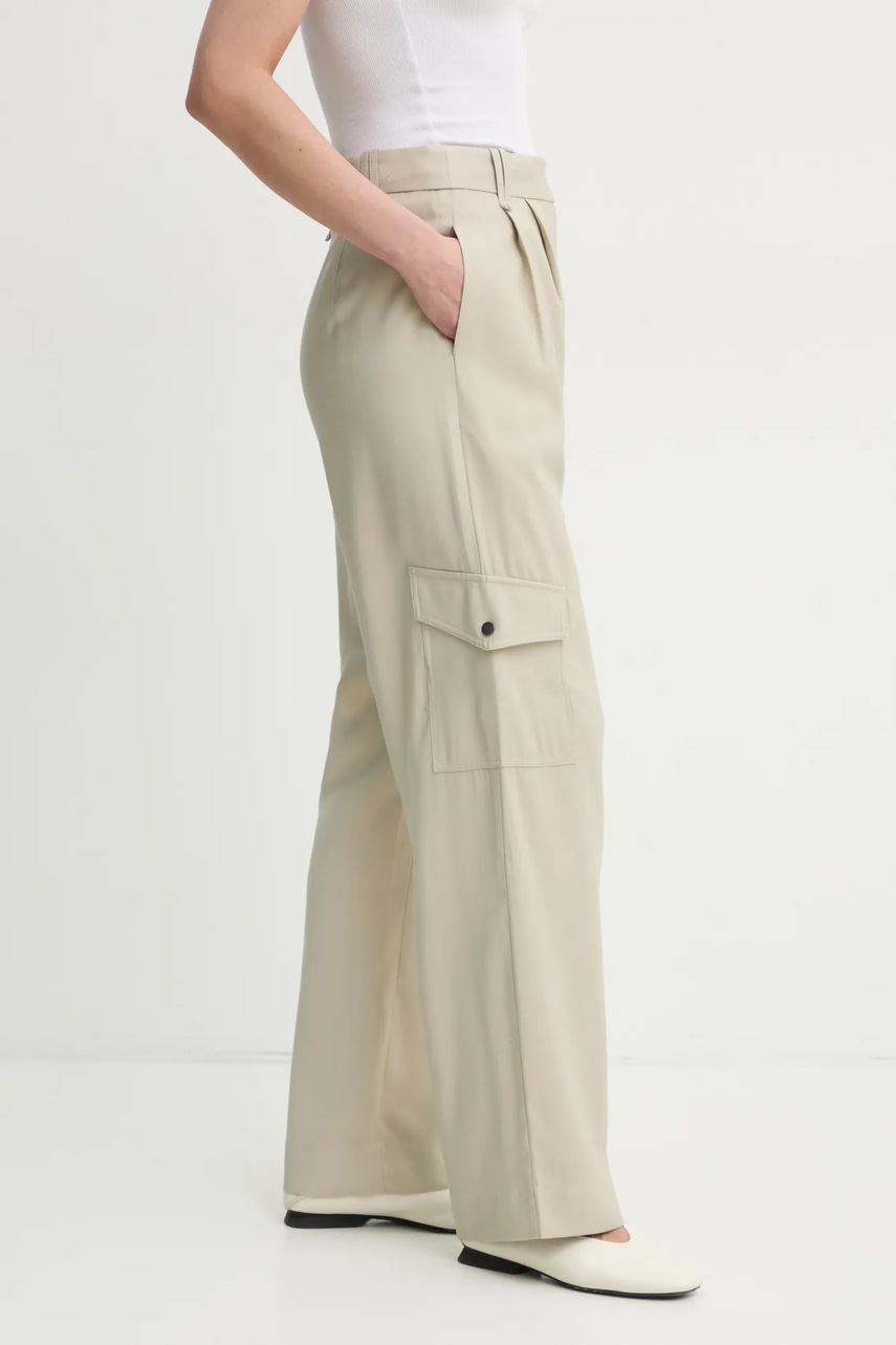 Bruuns Bazaar spodnie damskie kolor beżowy proste high waist BBW4338