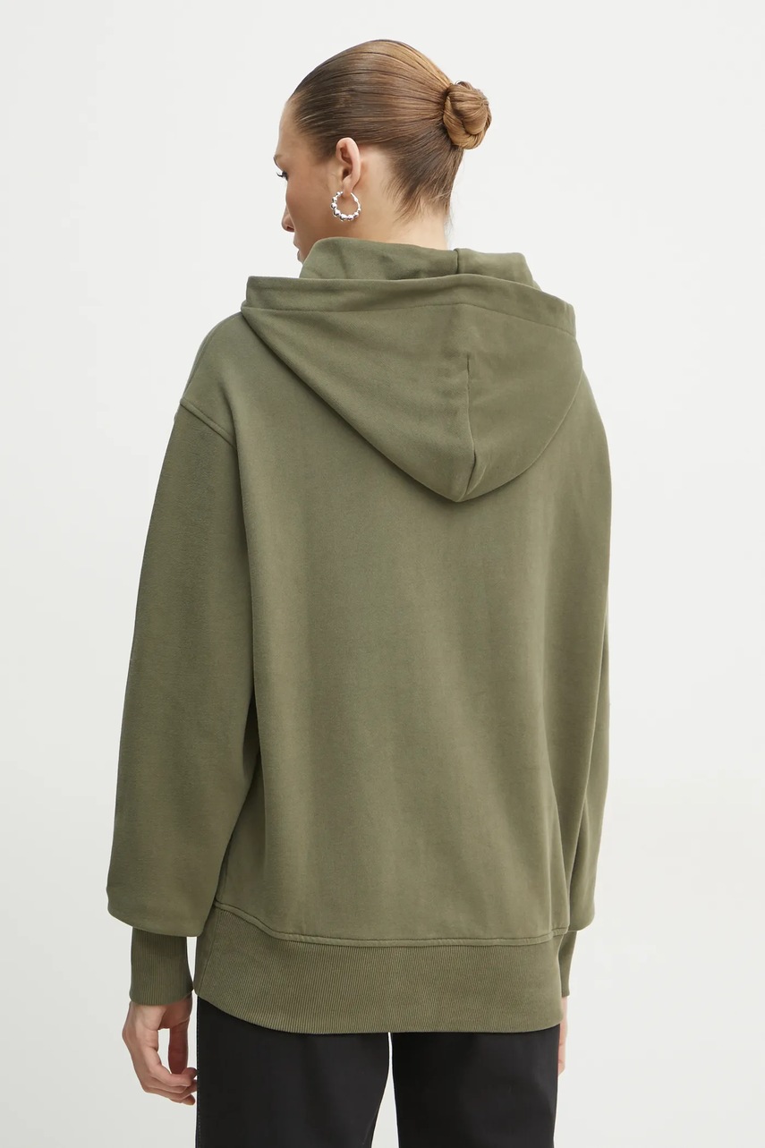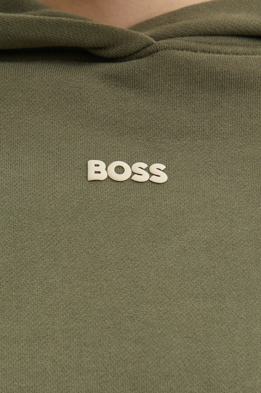 BOSS Orange bluza bawełniana damska kolor zielony z kapturem z aplikacją 50534815