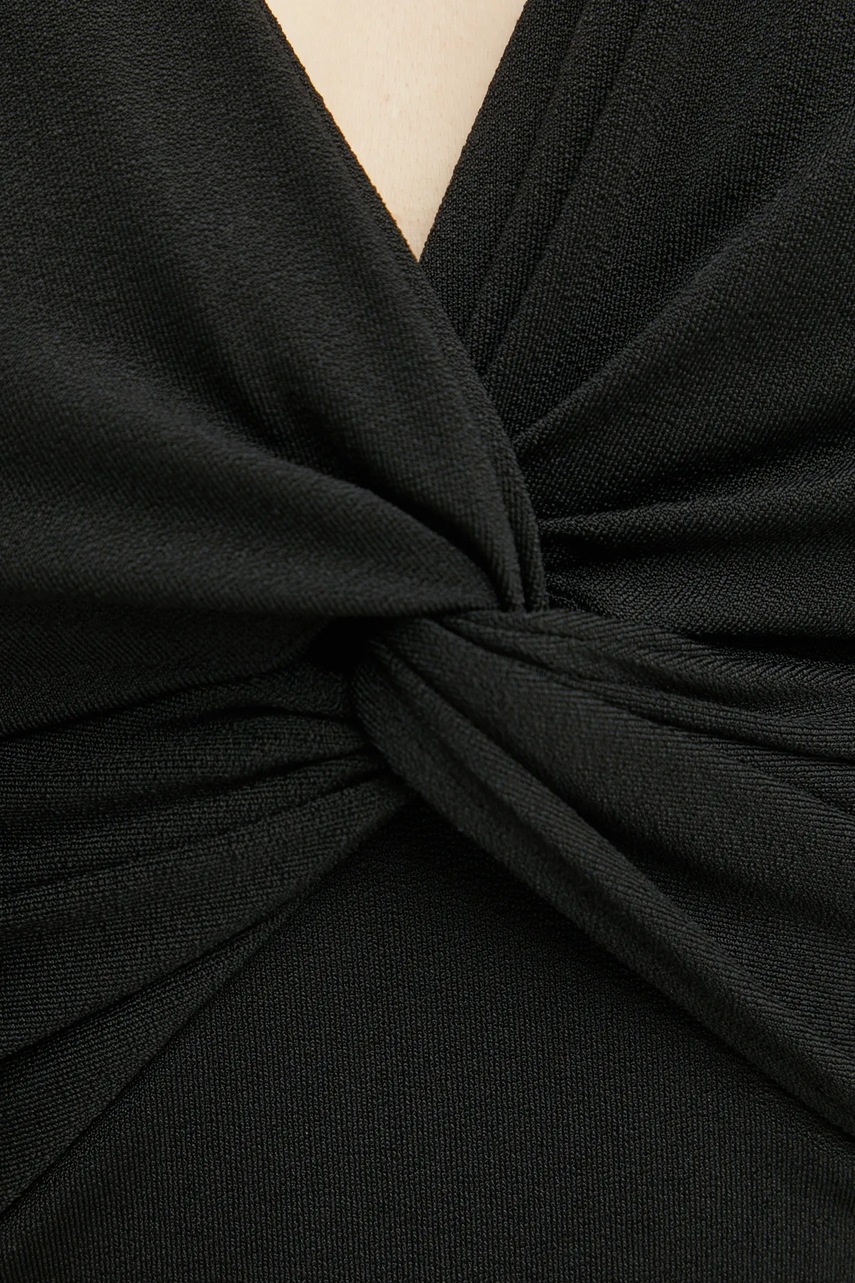 - Ozdobny, spiczasty dekolt.