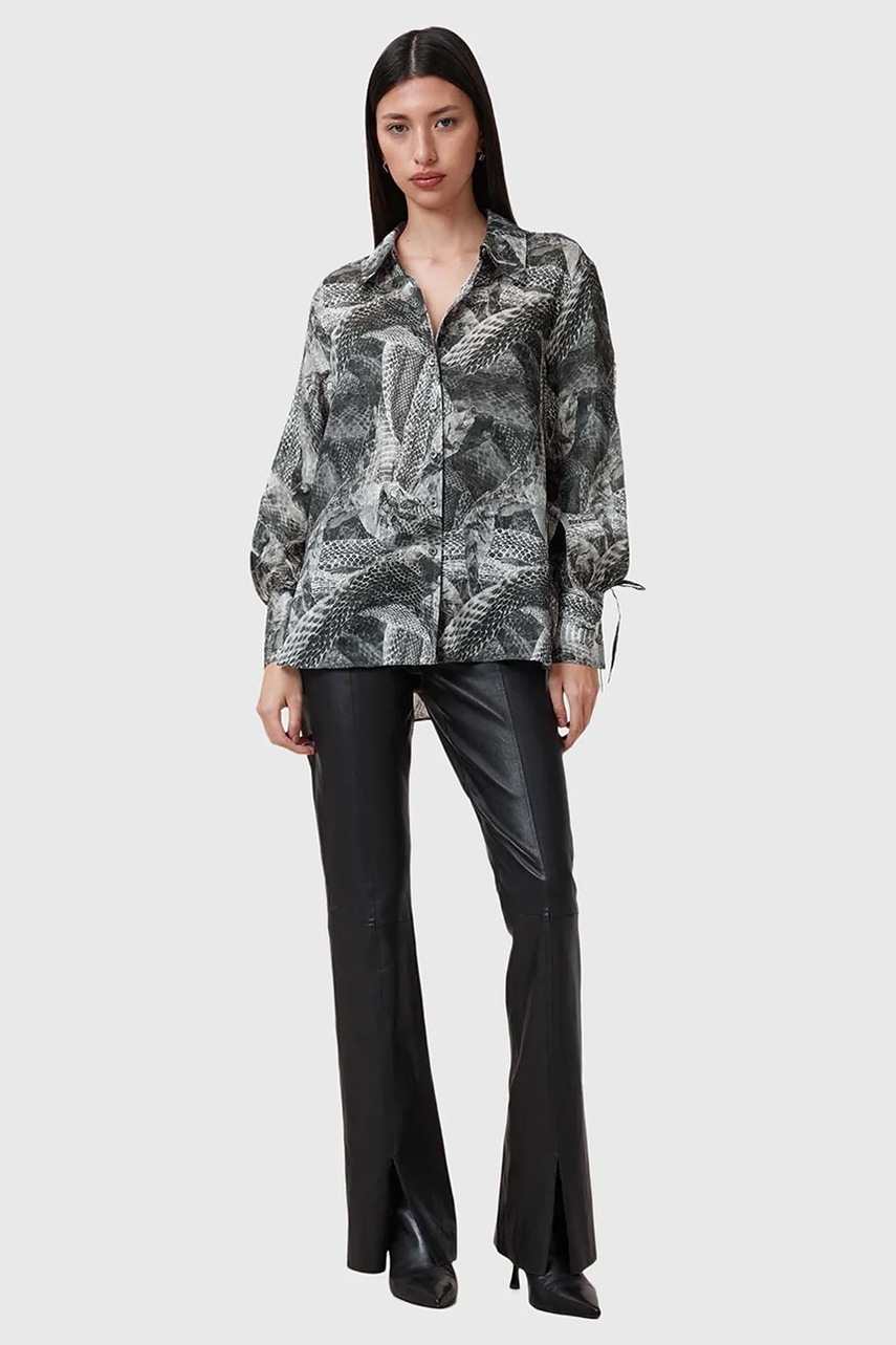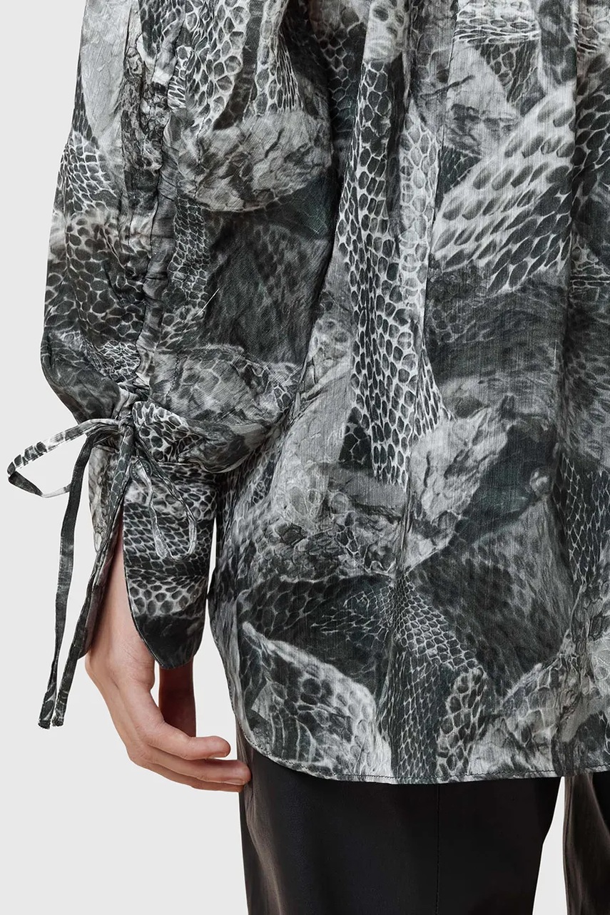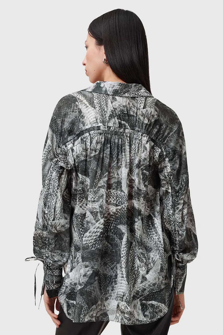 AllSaints koszula z domieszką jedwabiu LEYLA damska kolor szary relaxed z kołnierzykiem klasycznym W042PC