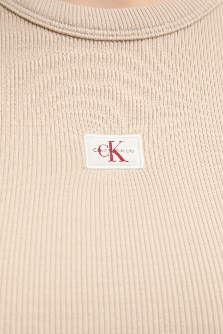 Calvin Klein Jeans sukienka kolor beżowy mini dopasowana J20J225265