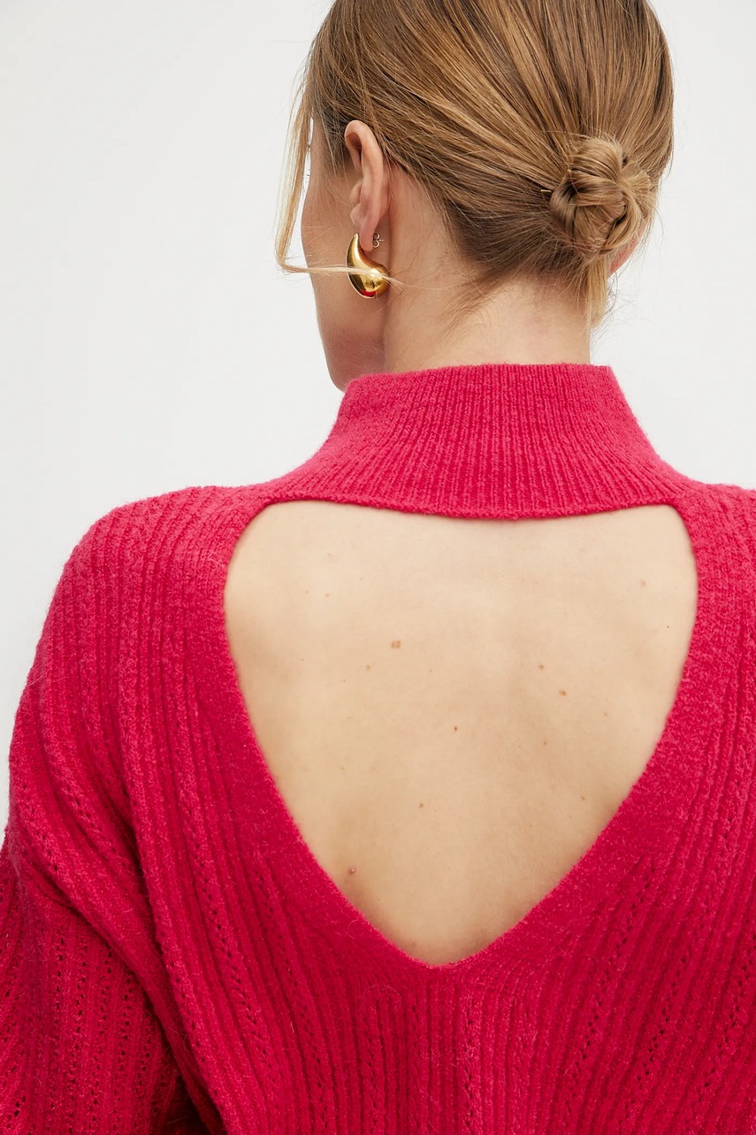 Morgan sweter z domieszką wełny MFLAMAN damski kolor różowy z półgolfem MFLAMAN