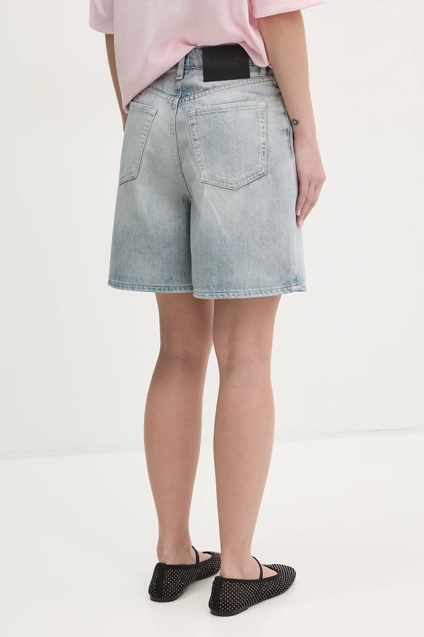 HUGO szorty jeansowe damskie kolor niebieski gładkie high waist 50538863