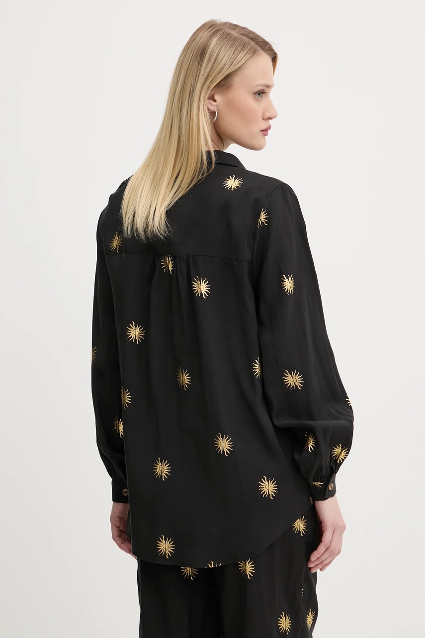 Never Fully Dressed koszula Gold Sun Miley damska kolor czarny relaxed z kołnierzykiem klasycznym NFDTO1492