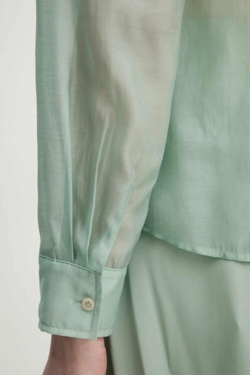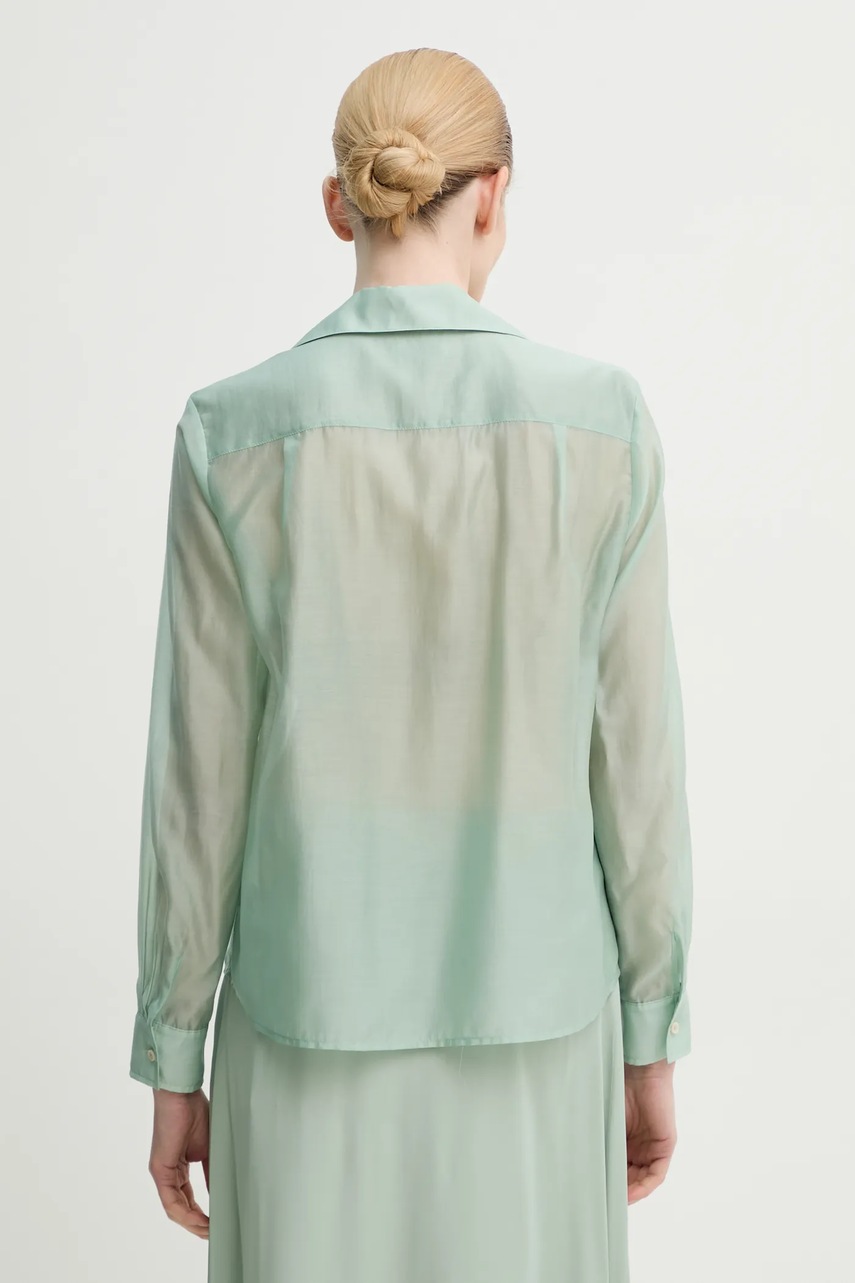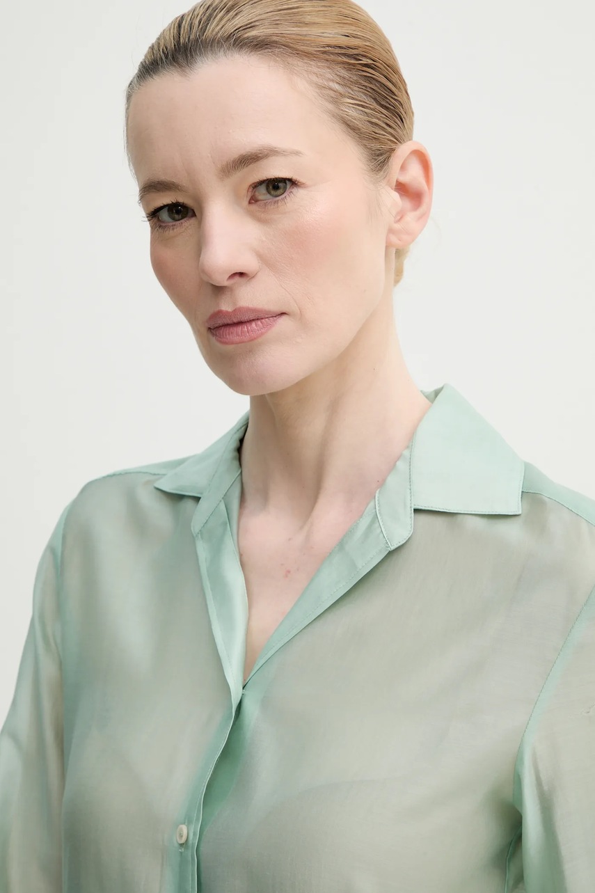 Marc O'Polo koszula damska kolor turkusowy regular z kołnierzykiem klasycznym 502089042137