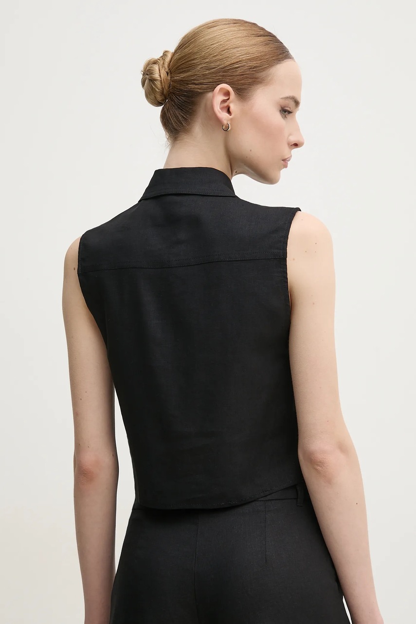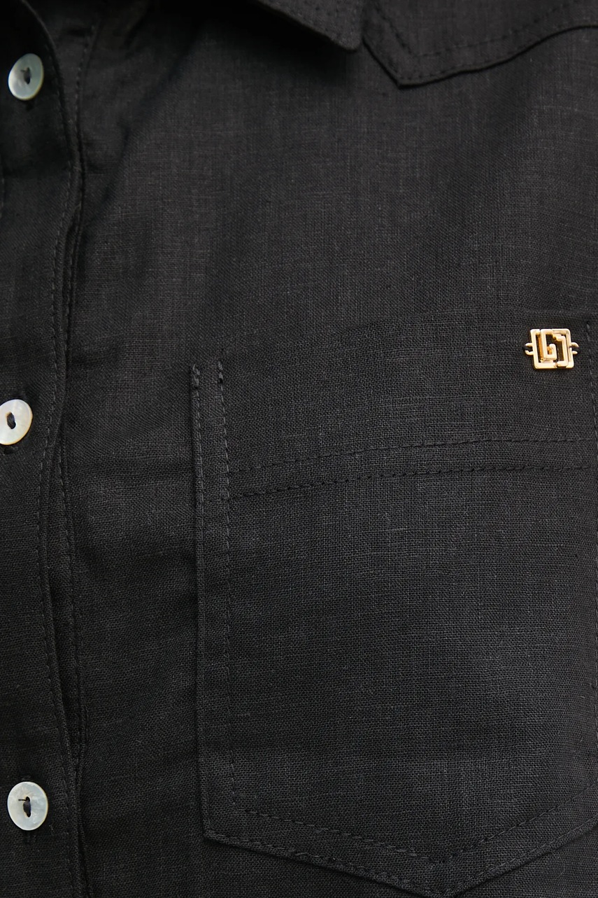 Gaudi koszula lniana damska kolor czarny regular z kołnierzykiem klasycznym 511BD45033