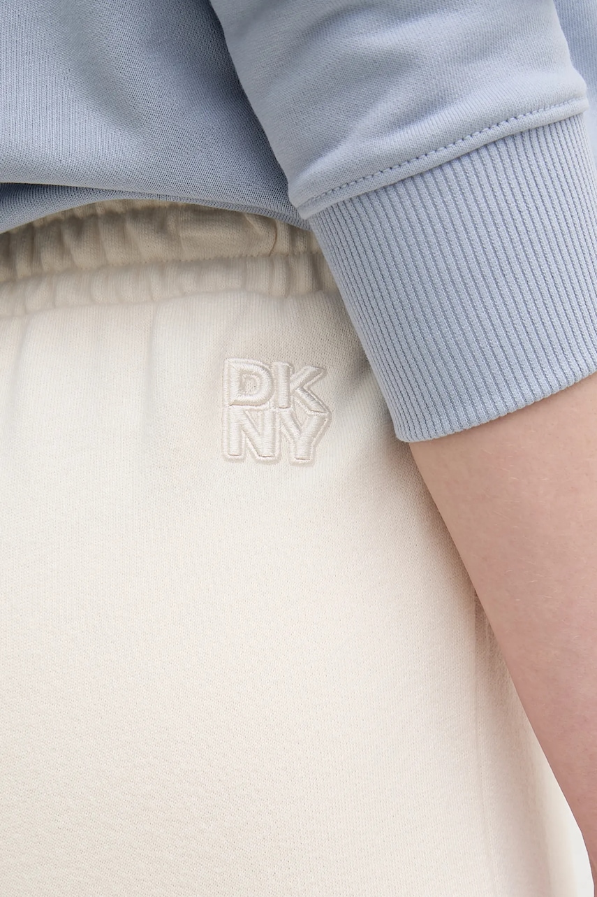 Dkny spodnie dresowe bawełniane damskie kolor beżowy gładkie DJ5P3068