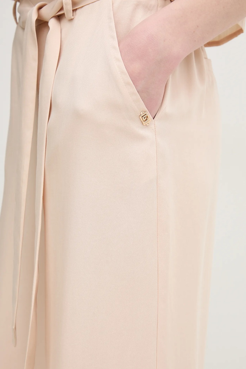 Gaudi spodnie damskie kolor beżowy szerokie high waist 511BD25011
